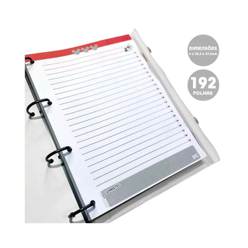 Versatilidade: Perfeito para uso em ambientes escolares, universitários ou mesmo no escritório, o fichário da Minnie é versátil e se adapta a várias necessidades, desde a organização de estudos até o planejamento de tarefas diárias.