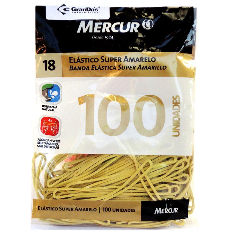 Elástico Látex nº 18 com 100 Unidades Super Amarelo Mercur, feito com borracha natural.