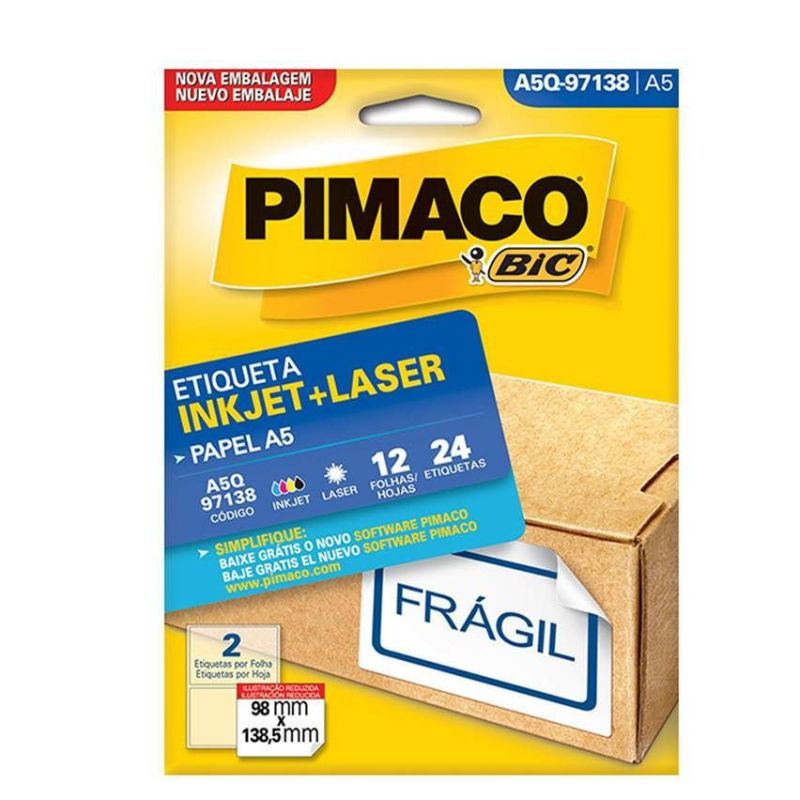 Etiqueta Laser A5 Q-97138 Pimaco: Esta etiqueta é uma ferramenta prática e versátil para organização e identificação. Com o formato A5, é ideal para impressão a laser, garantindo etiquetas de alta qualidade e nitidez. Sua aderência eficiente permite aplicação em diversas superfícies, assegurando uma fixação duradoura. Desenvolvida pela reconhecida marca Pimaco, sinônimo de excelência em materiais de papelaria, a Etiqueta Laser A5 Q-97138 oferece confiabilidade e precisão. Verifique sua disponibilidade na Papelaria Central em Uberlândia e aproveite os benefícios dessa etiqueta para otimizar a organização de documentos, produtos ou materiais diversos.