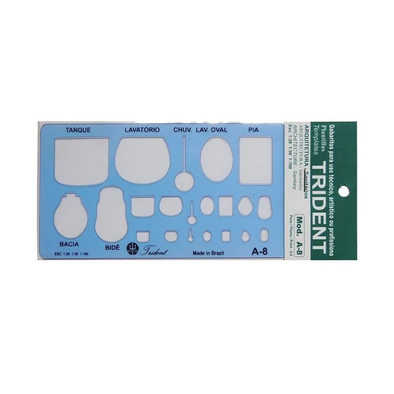 Leve e de fácil manuseio, o Gabarito A-8 Sanitários da Trident é uma adição valiosa ao conjunto de ferramentas de qualquer profissional ou estudante da área. Sua praticidade e precisão economizam tempo e esforço no desenvolvimento de projetos, permitindo uma maior concentração nos aspectos criativos e técnicos do trabalho.