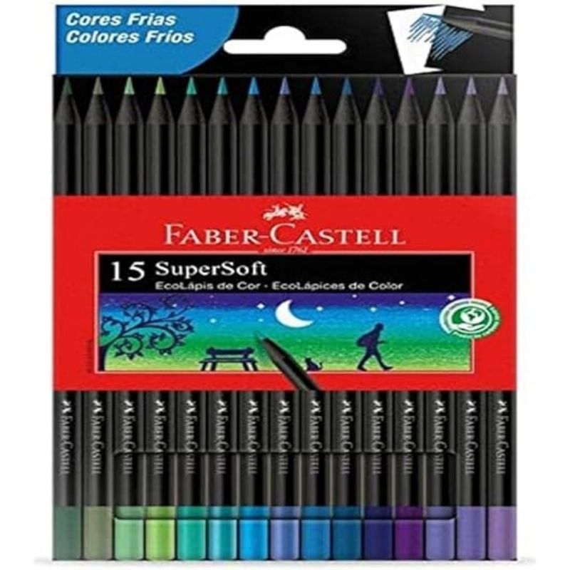 Visite a Papelaria Central: Convidamos você a mergulhar na paz e na serenidade das cores frias na Papelaria Central em Uberlândia. Adquira o Conjunto de Lápis de Cor Faber Supersoft com 15 Cores Frias e deixe sua criatividade fluir com tons que emanam tranquilidade e elegância.