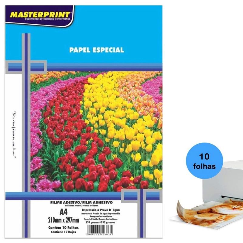 Papel Impressão Filme Adesivo Vinil BR 135gr A4 10 folhas Masterprint