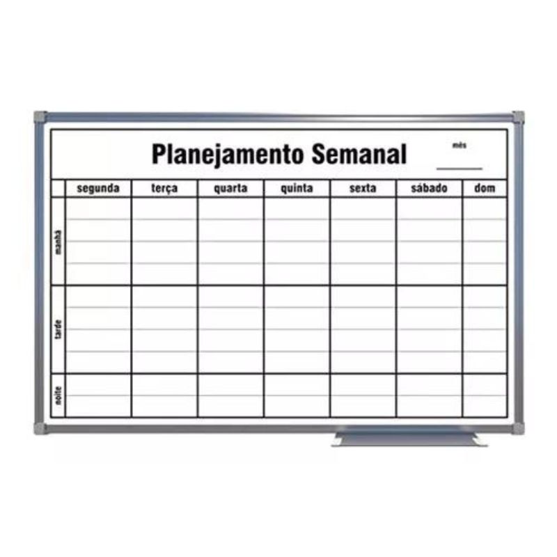 O destaque deste quadro branco é seu formato semanal, que permite planejar e organizar sua semana de maneira detalhada e estruturada. Seja para agendar reuniões, definir metas diárias ou criar listas de afazeres, este quadro oferece a flexibilidade necessária para atender às suas necessidades de organização.